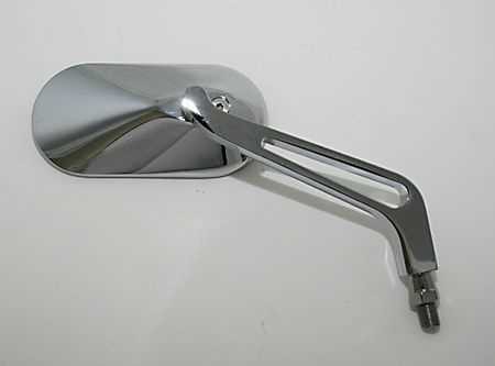 No homologation. Not for use in public road!SHIN YO Aluminium mirror OVALHigh-quality, chromed handlebar mirror comes with a lightly grey-tinted mirror glass for optimal glare protection and a large notch at the stem. DimensionsHead width: 125 mmHead height: 62 mmStem length: approx. 140 mm M10 right/hand threadDelivery contents: 1 pair incl. one extra adapter M10 LH thread for YamahaNote: Without homologation
