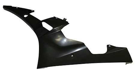 Frontfairing lower part LH side for YZF R6, RJ11, 06-07, unpainted ABS, black or white. The fairing is made of high-quality ABS and has got all mounting brackets including the fixing points for the headlamps, cover and so on. All parts are black or white unpainted.